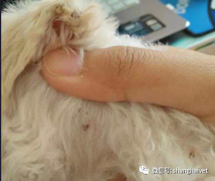 跳蚤:吸食血液,生命力顽强,感染后毛发里会出现黑色的颗粒,这就是跳蚤的排泄物——造成剧烈瘙痒,出现过敏性皮炎、贫血等症状;
